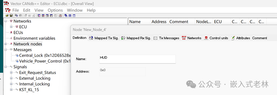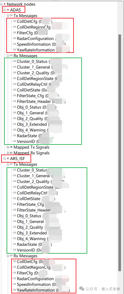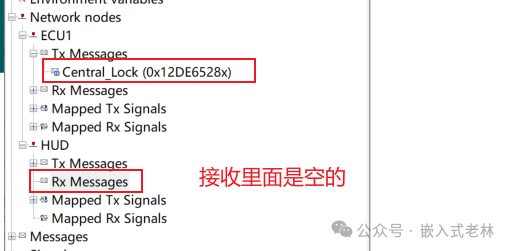 有个需要注意的点:这里只能双击节点名称才能添加,双击节点名称下面的Tx Messages,Rx Messages,Mapped Tx Signals,Mapped Rx Signals都无法添加。