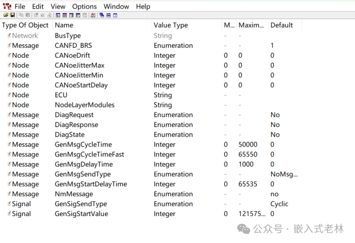 ”Attribute Definitions”中的属性也可以通过从其他项目的dbc文件中导入;操作如下:在”File”中选择”Import Attribute Definitions”,选择要导入的dbc文件,即可将该dbc中的属性定义导入到我们现在的dbc文件中来
