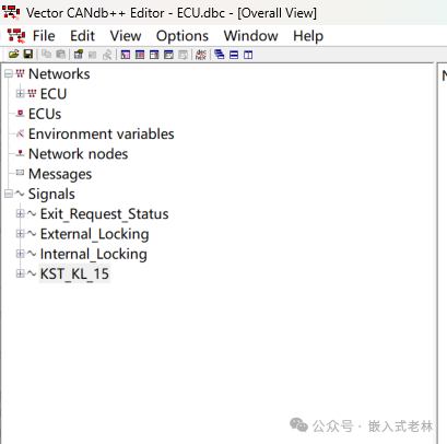 全称:Database CAN,CAN网络的数据库文件,定义了CAN网络的节点、消息、信号的所有细节,包括每个节点会发送哪些消息和接收哪些消息,每个消息里面包含哪些信号,每个信号位于消息的哪个位置,信号值有哪些,每个值代表的含义是什么,等等
