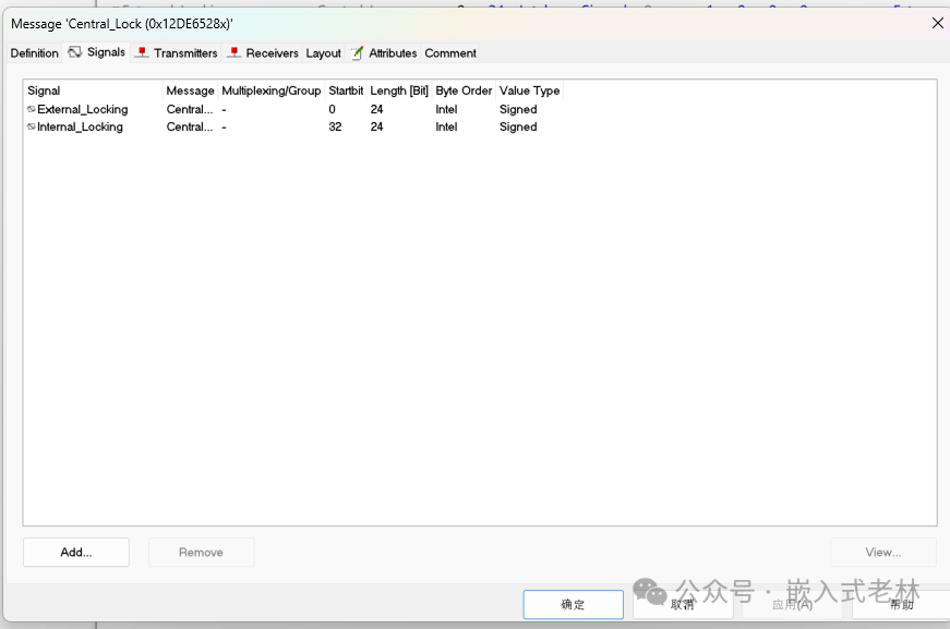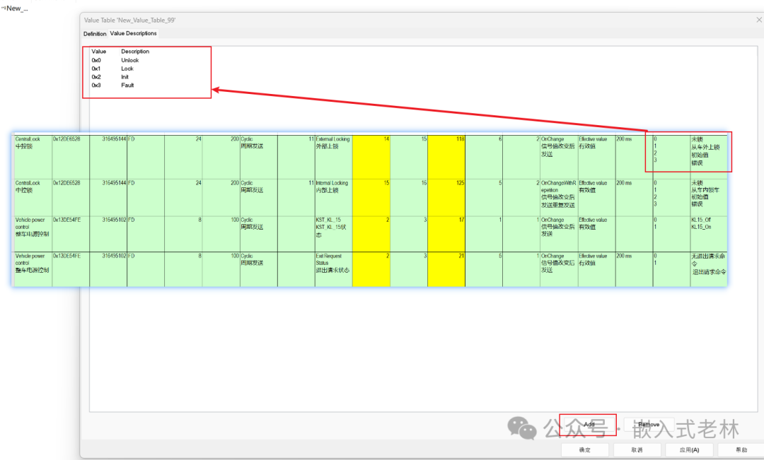 按照CAN通信矩阵一个个添加即可