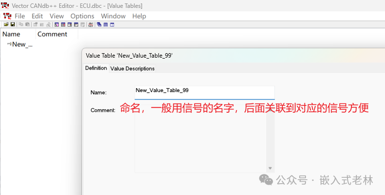 对value table进行命名,值描述定义,comment可不加,目前也是灰色的,无法加,暂时不知道啥原因