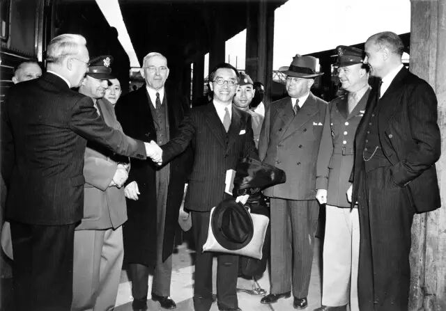 为加强与美国的关系,蒋介石派留美博士胡适出任中华民国驻美大使,1938年9月,胡适在火车站受到美地方政府官员的热情接待。