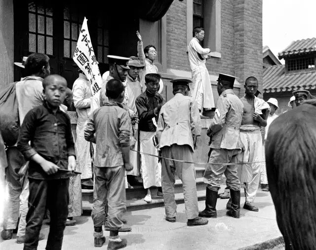 1919年,五四运动期间,北京大学的学生正在对民众演讲。