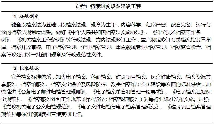 2.健全档案法规制度和标准规范。做好新修订档案法配套地方性法规、规章、行政规范性文件立改废释工作,强化档案开放审核、档案移交处置、电子档案管理、重点领域专业档案管理、档案监督检查、档案人才培养等方面的制度规范和政策供给,及时修订、清理与现实需要不相适应的法规制度,推进地方档案标准体系建设,构建系统完备、科学规范、操作性强的全市档案法规制度体系。