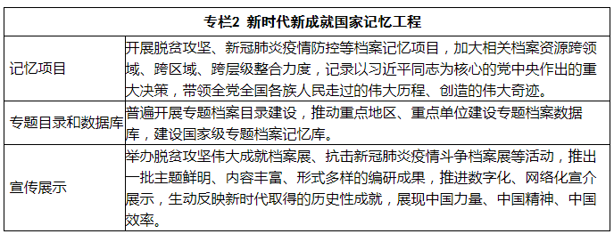 2.专题目录和数据库。开展专题档案目录建设,建立脱贫攻坚、新冠肺炎疫情防控等专题档案数据库,建设我市专题档案记忆库。