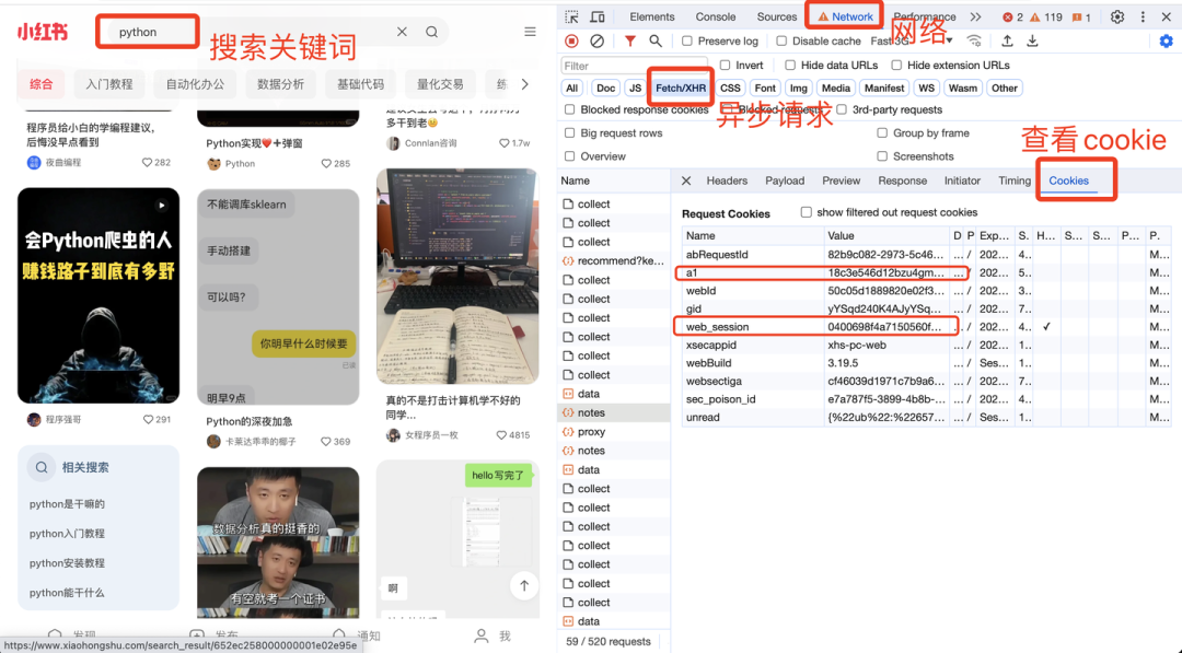 其中,cookie里的a1和web_session获取方法,如下: