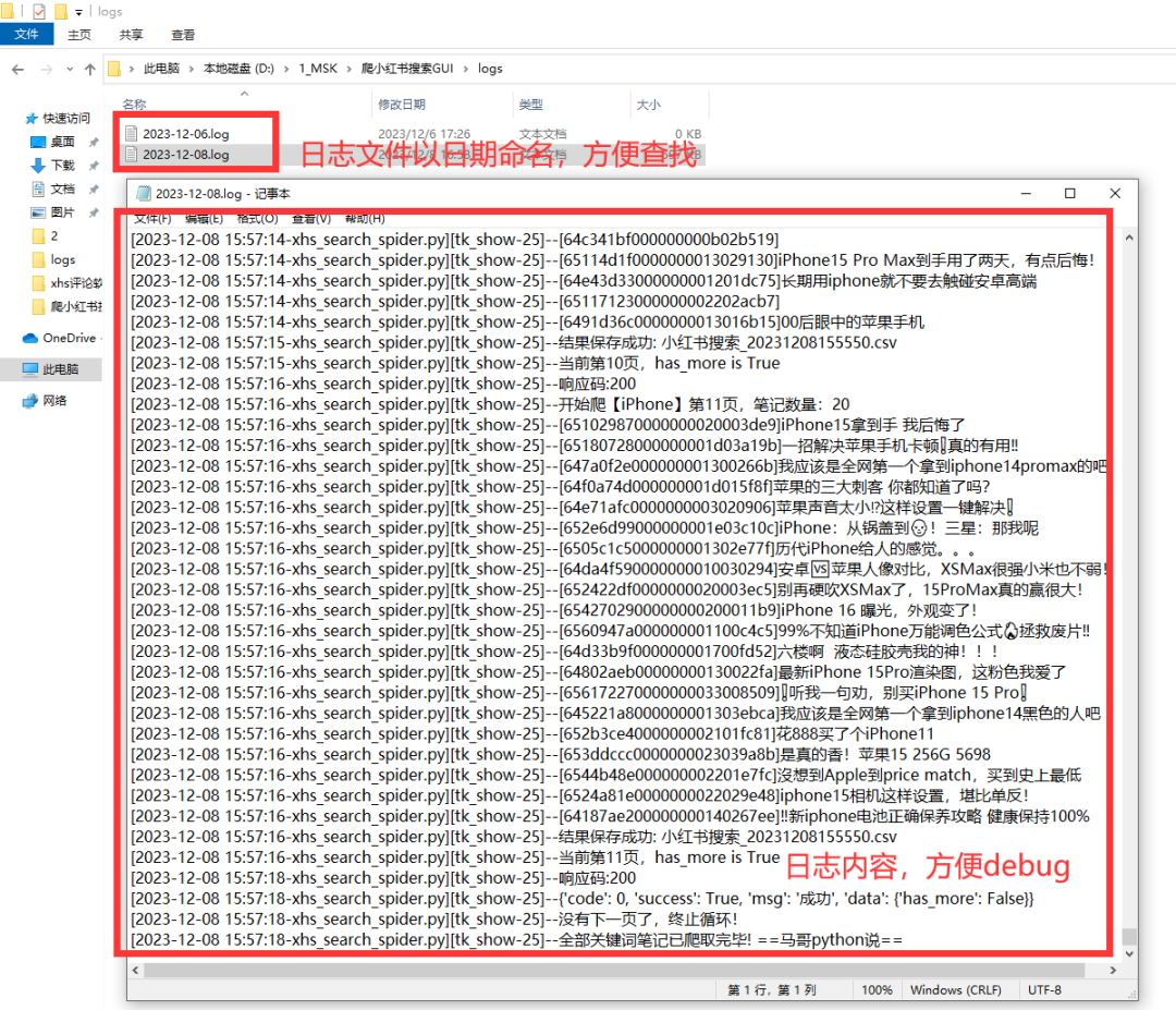 我用python开发了一个爬虫采集软件,可自动按关键词抓取小红书笔记数据。