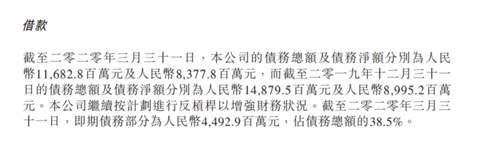 财报显示,截至2020年3月31日,神州租车的债务总额与债务净额分别为116.83亿元与83.78亿元。也就是说,神州租车累计的债务总额将近117亿元,扣除掉双方之间互相负债后剩的纯债务近84亿元,至3月31日,即将到期的债44.9亿元。