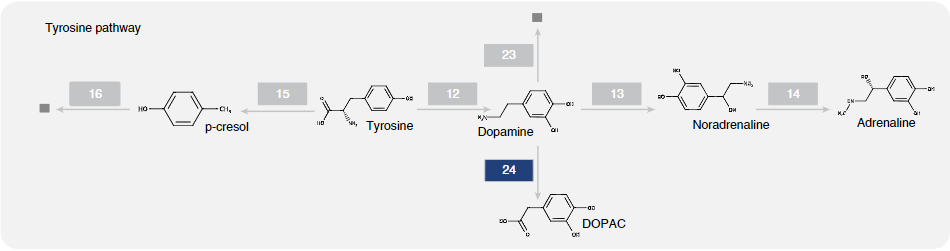 为了展示一下这个工具的“本事”,在这次的研究中,研究人员也进行了一些分析,他们发现,微生物产生DOPAC(3,4-二羟基苯乙酸,多巴胺经单胺氧化酶降解后的产物)的能力越强,生活质量越高。根据过去的研究,DOPAC能够抑制结肠癌细胞的增殖[7],而且它的水平的下降也是帕金森病的一个标志[8],这两点也反面映衬了研究人员的分析结果。当然,分析结果是生物信息学的产物,未来,还需要实验来证实。
