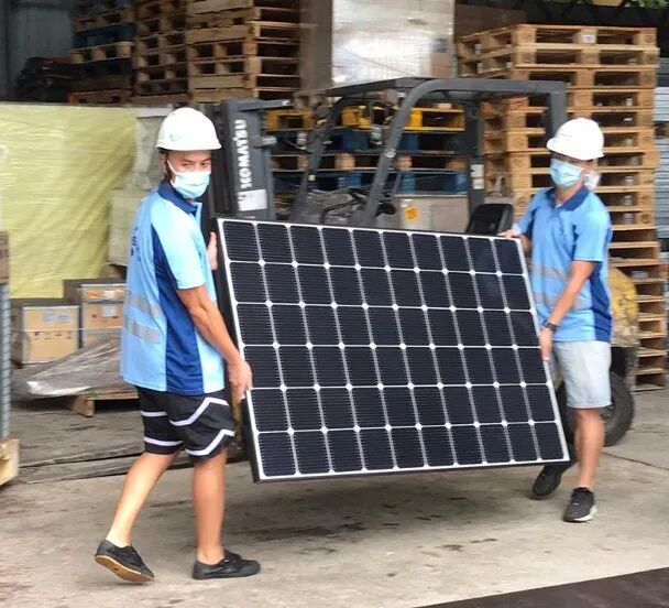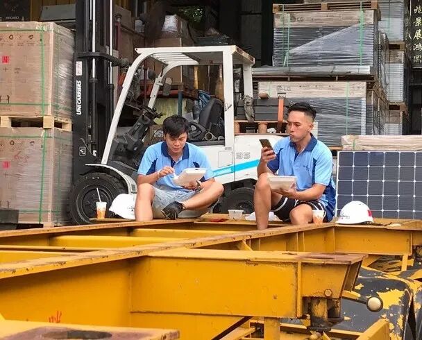 最近有网友拍到莫家淦在货柜场搬东西,而且搬的还是大型的太阳能板,很费力气。