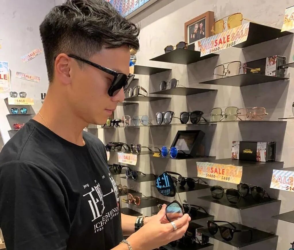 而且这位大哥很有经商的头脑,他还自己开创了个人的眼镜品牌HACHilll,还深受郭富城、应采儿、任达华、谭咏麟等一众香港明星的热捧,连开6间分店。