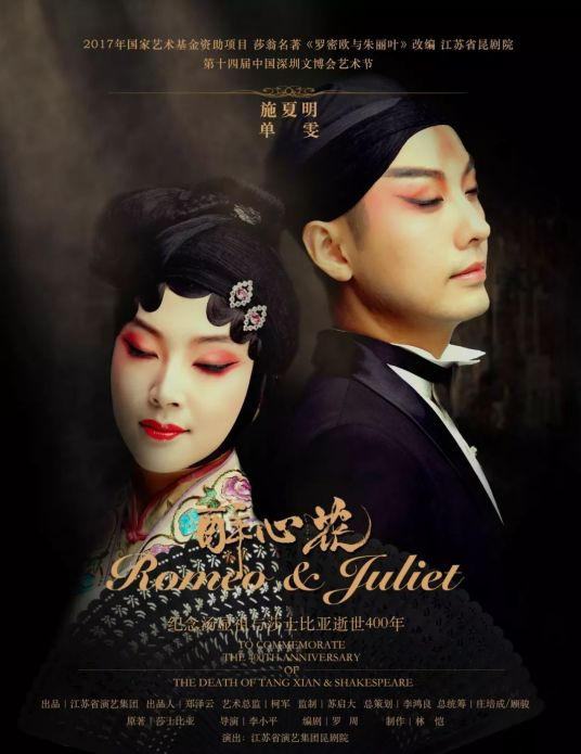 其实《罗密欧与朱丽叶》这个著名的莎翁作品同样也曾被昆曲改编过,叫《醉心花》,人名则入乡随俗,一个叫姬灿,一个叫嬴令,两家是世仇,故事情节也几乎完全一致。