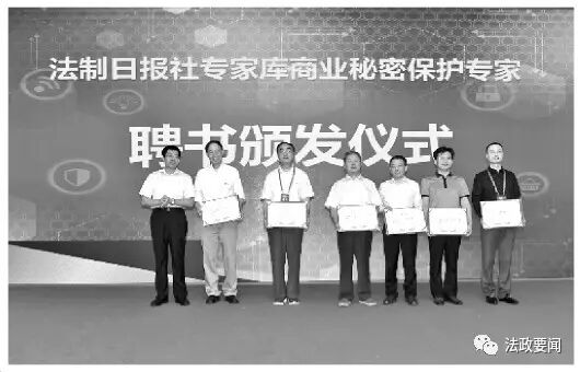 图为法制日报社社长邵炳芳(左一)为法制日报社专家库商业秘密保护专家颁发聘书。 法制日报记者 杨晋峰摄