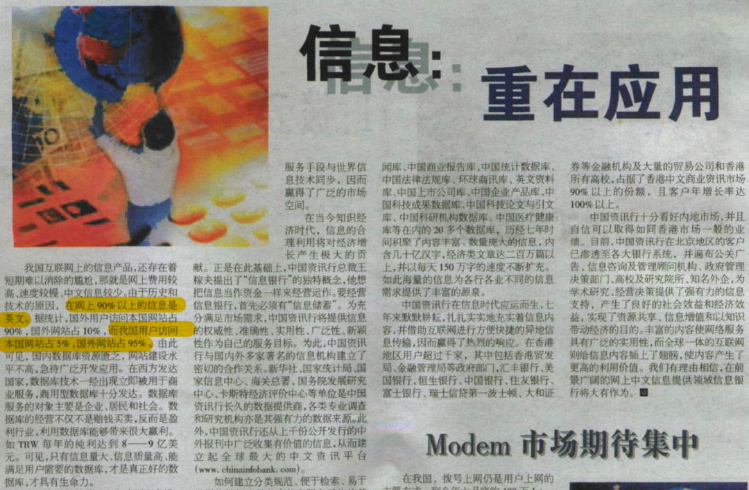国内互联网资源的突出问题之一是缺乏中文信息、信息质量不高、网上信息重复……