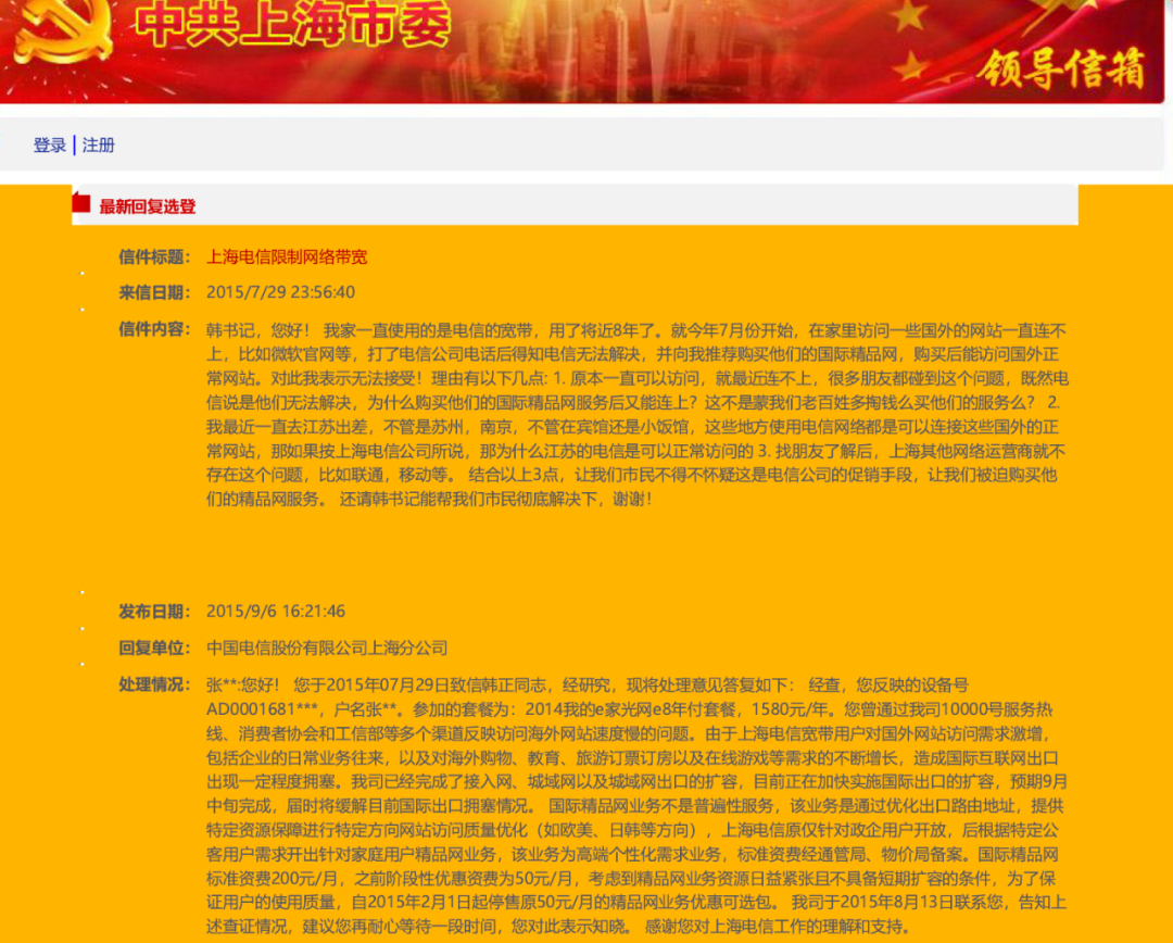 因此,不同用户使用不同电信运营商的服务,其在翻墙时经过的国际出入口信道是不同的,具体可参见资料来源中的链接,其详细阐述了用户翻墙行为经过的骨干网线路。