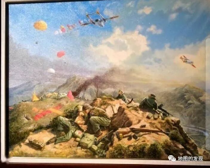 显示的是在1953年与我军作战时困守山头的加军被美军空投补给的战况。图上作战的加军均戴软帽,仔细看,背影的那个机枪手带的也是宽檐软帽。所以,图1加拿大战俘头上带的那顶钢盔或许还另有故事。,