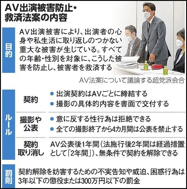 日本那边前两天通过了一项新法案,叫「AV出演被害防止・救济法」。
