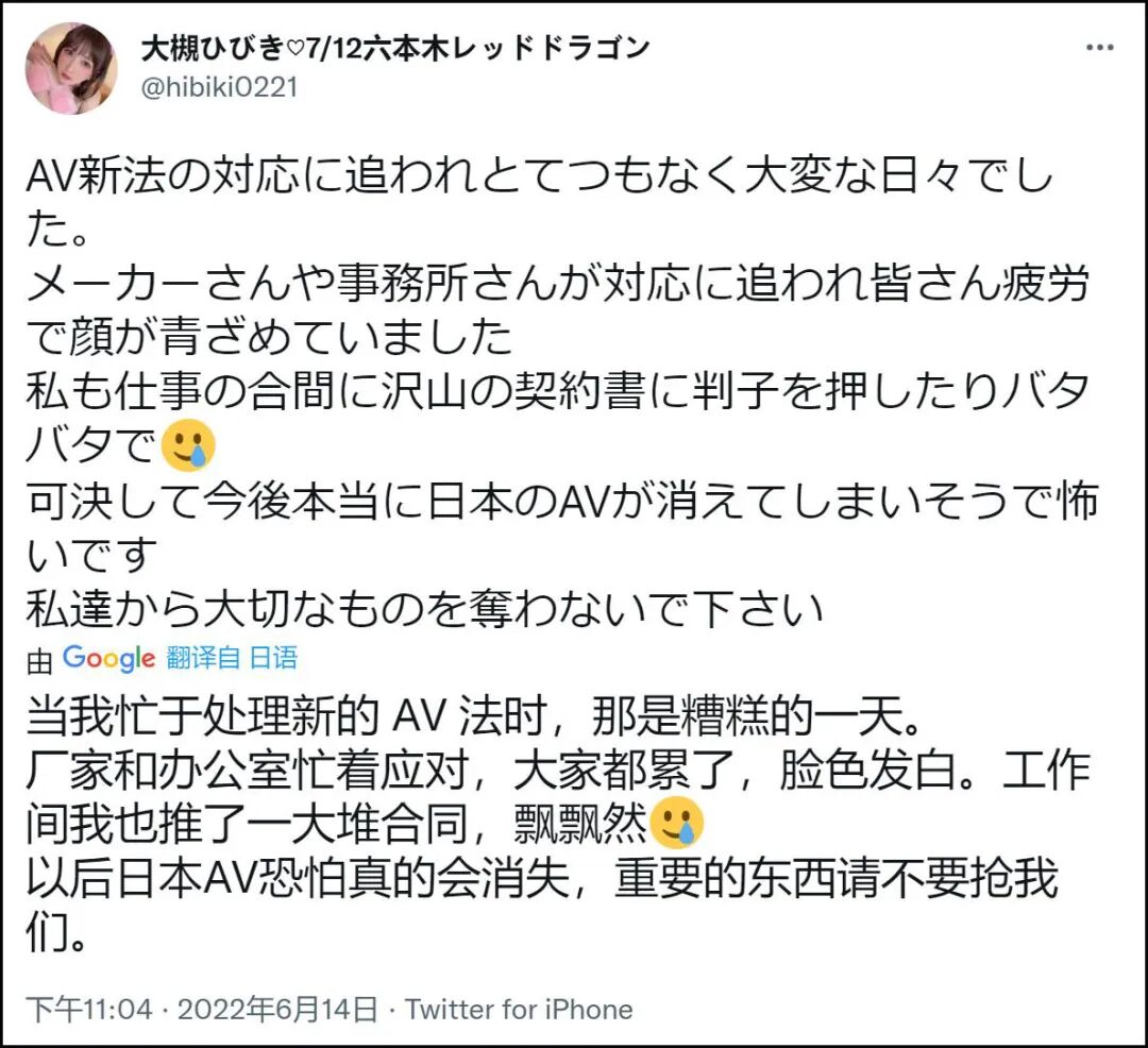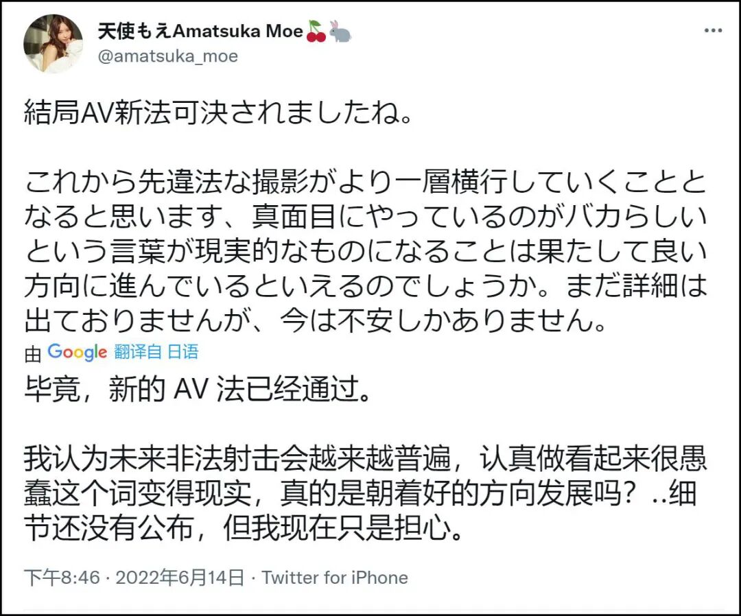 我随便翻了翻几个列表里的老师推特,普遍对此悲观,认为违法的摄影将会在上层横行,认真当成事业做的人成了SB,女优能随意退出,制片投鼠忌器不敢投入。