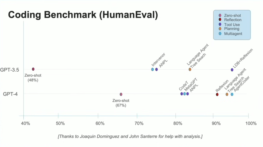 为了验证 Agentic Workflow 的效果,吴恩达的团队进行了一项基于代码生成基准测试集 HumanEval (Coding Benchmark (HumanEval)) 的实验。