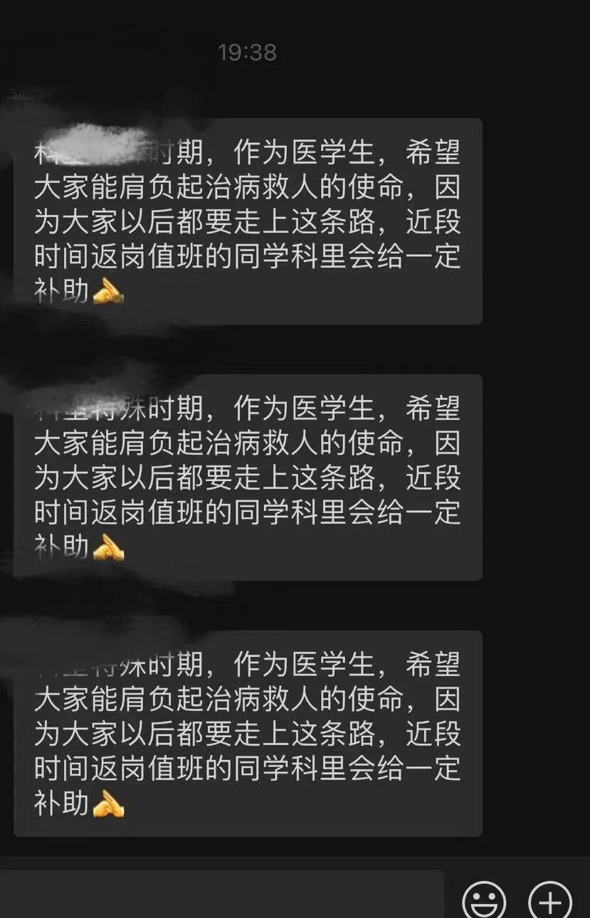12月18日,她所在的医院下达了一则文件,建议“全员规培生、专硕研究生等错峰上班,防止交叉感染。”“康复后按照错峰排班尽快加入战斗。”吴敏佳很失望:“学校不管我们,医院也不管我们,让我们自生自灭。”