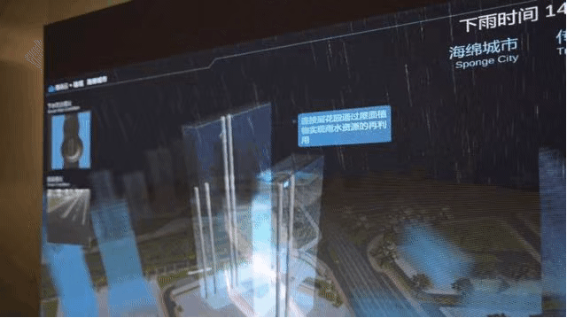 8000 平方米的广场上铺装的生态陶瓷透水砖,可以大量吸存和净化雨水,用来浇灌大楼里的花花草草。