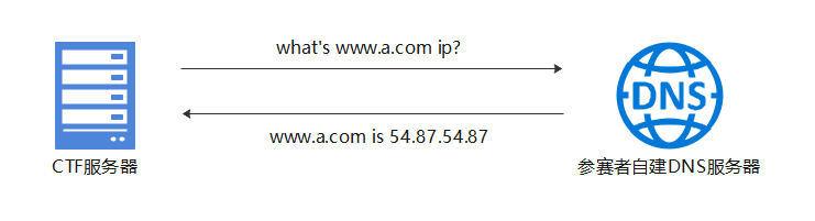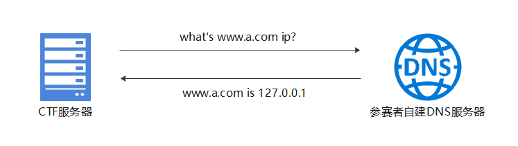 也就是说,程序执行file_get_contents方法时,需要获取此域名的ip地址解析。由于攻击者将DNS TTL设置的数值极其小,从程序第一次获取ip到执行file_get_contents方法处时,DNS缓存早已失效,CTF服务器此时需要重新发起域名解析请求以获取www.a.com的ip,此时参赛者修改DNS解析结果以完成DNS重绑定攻击,见下图: