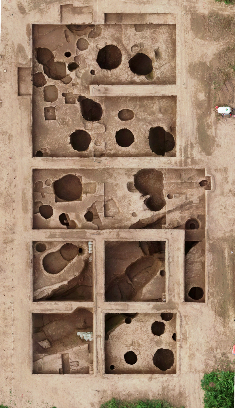 这里,还发现东西并列的两重环壕。东环壕北部中央,还发现有朱砂墓、夯土基址和大型地坑院建筑等。这些证明太平遗址已有“城”之形,目前面积约两百万平米(约两平方公里,三个故宫大小)。