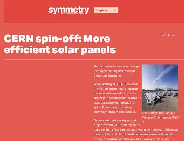 《Symmetry》的报道:CERNspin-off: More efficient solar panels(图片来自网络)
