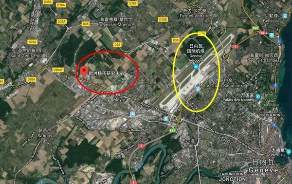 欧洲核子研究中心(CERN)跨越瑞士和法国边境。目前世界上最大的粒子加速器——大型强子对撞机(LHC)建在地下100米、总长约27公里环形隧道内。
