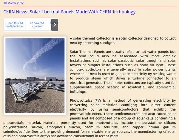CERN News: Solar Thermal Panels MadeWith CERN Technology(图片来自网络)