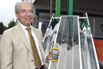 本韦努蒂在测量太阳能热板的温度(图片来自网络)