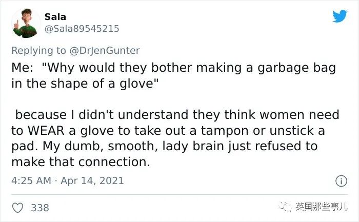 “这两个男人设计了粉红手套,让你可以妥当谨慎地扔卫生巾和卫生棉条。我没骗你们,这tm是真的。”