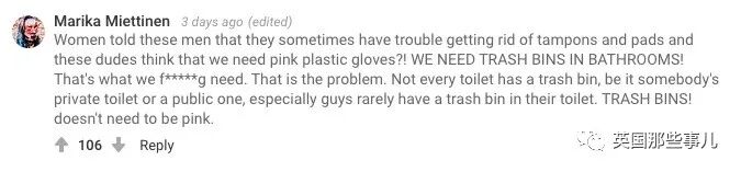 “女人们跟他们说有时扔卫生巾有困难,他们就觉得女人需要粉色塑料手套?!
