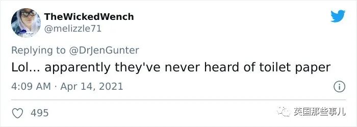 “哈哈哈.... 明显他们没听过卫生纸这个东西。”