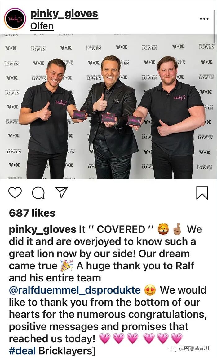粉红手套赢得了一位男评审的青睐,他决定为他们投资3万欧元。