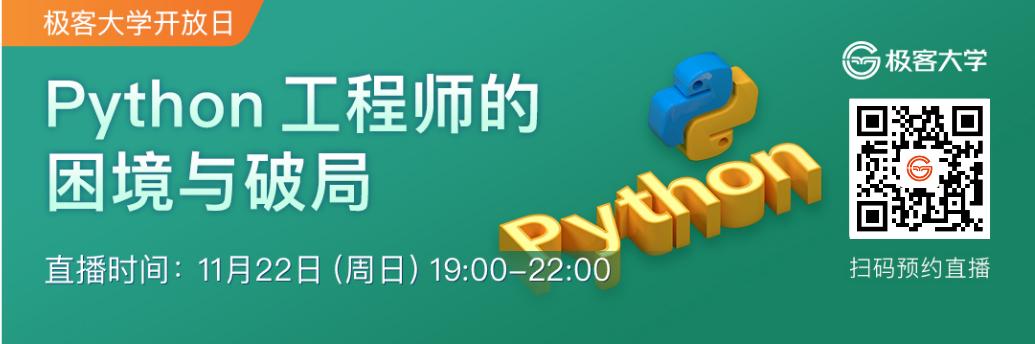 本周日晚 19 点,我们希望通过极客大学开放日直播,给大家指出一些 Python 技能提升的方向,同时也提供一些有效的学习方法和路径。