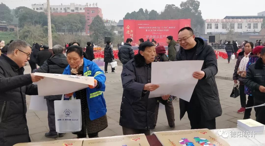 19日,德阳市2020年文化科技卫生“三下乡”启动仪式在中江县仓山镇举行。全市30余家市级部门、单位在这里集中开展多种形式的送实物、送技术、送文艺、送法律下乡活动。市统计局积极响应号召,借力本次“三下乡”活动,开展“七人普”宣传和统计法律法规宣传,发放人口普查宣传年画日历1000余份,宣传手册200余套,充分营造了群众了解、支持、配合人口普查的良好氛围。