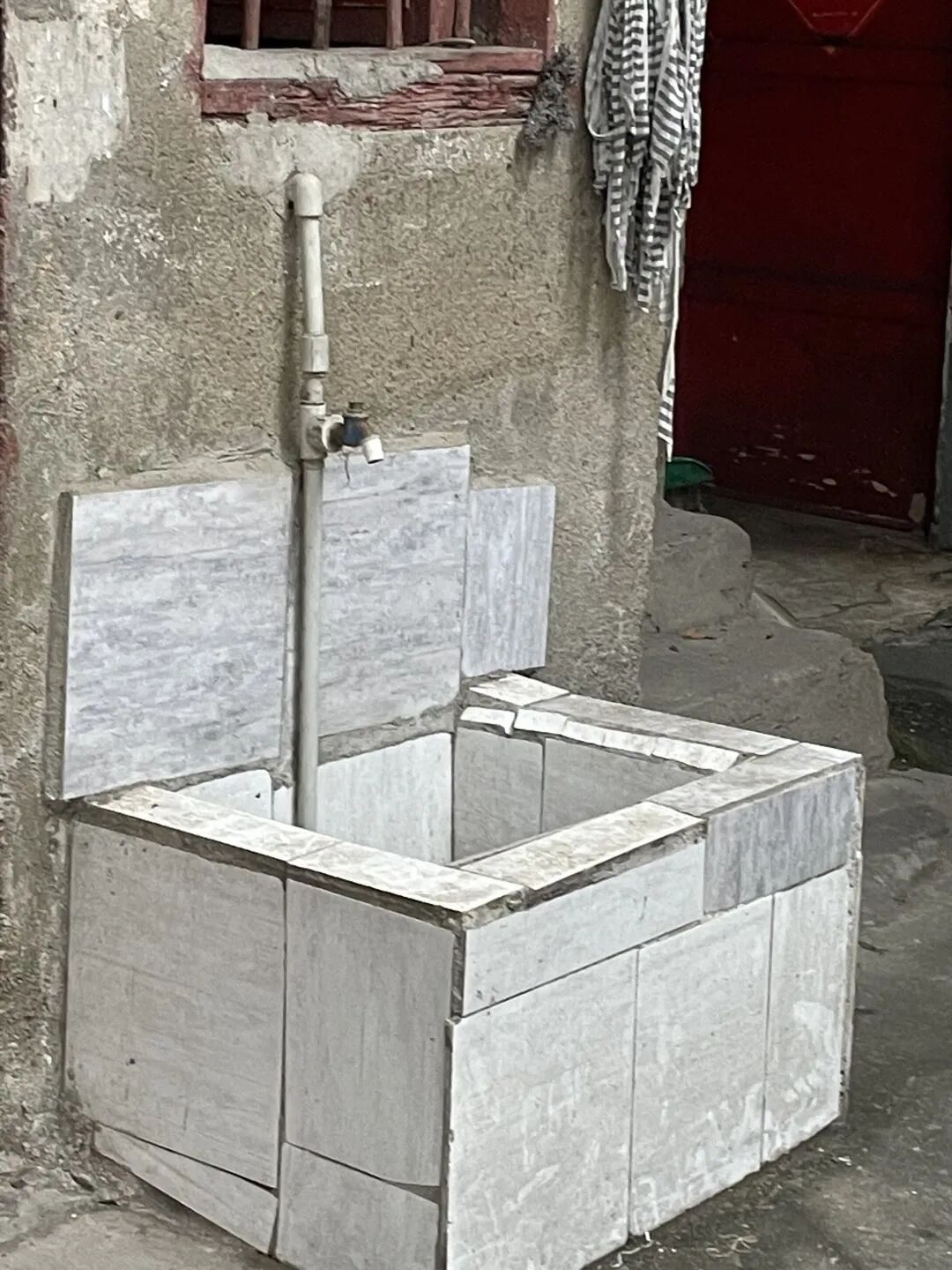 看我对着它看了许久,一位居民走过来跟我说,这小椅子是他家装上去的,隔壁住户临走的时候剩下了一个旧塑料椅面,而自己家批下来的征地款还没有全部拿到,一时半会儿走不了。为了于人于己都方便歇脚,他把椅子嵌在了墙上。