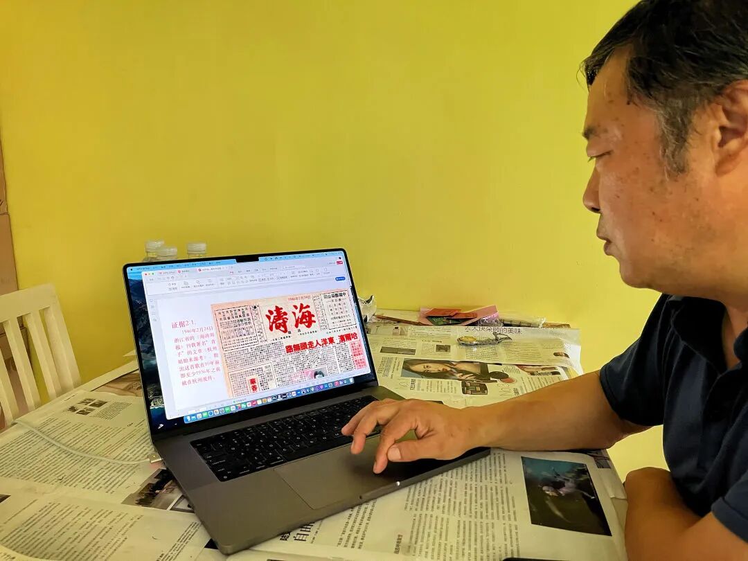 2023年9月15日,北京,吴粤北展示着电脑里他搜集到的证据。(南方周末记者 苏有鹏 / 图)