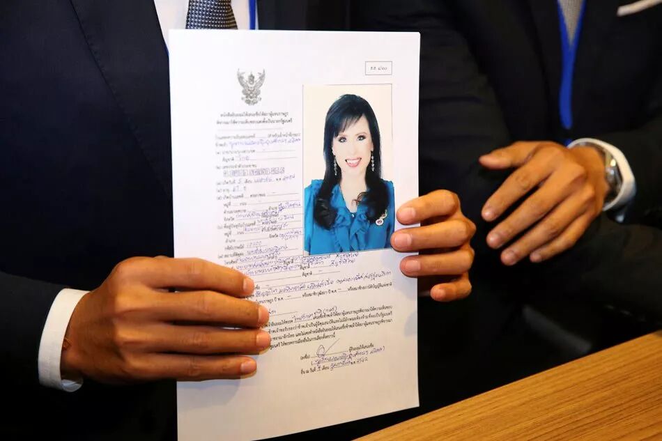 △泰护国党提交的带有乌汶叻照片的总理候选人表格。