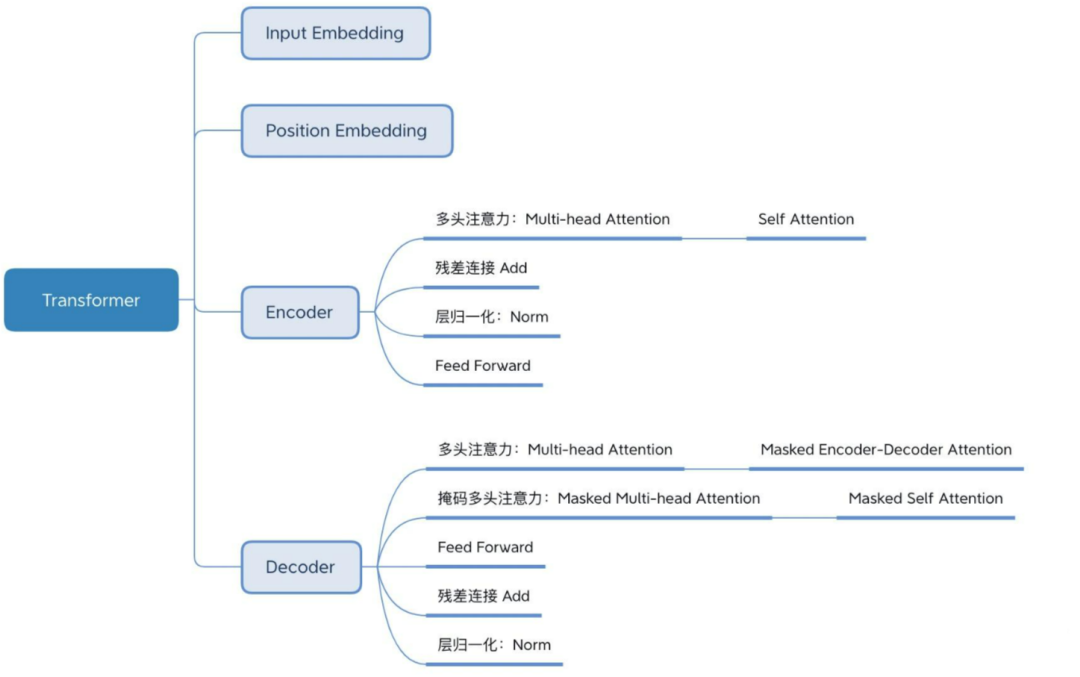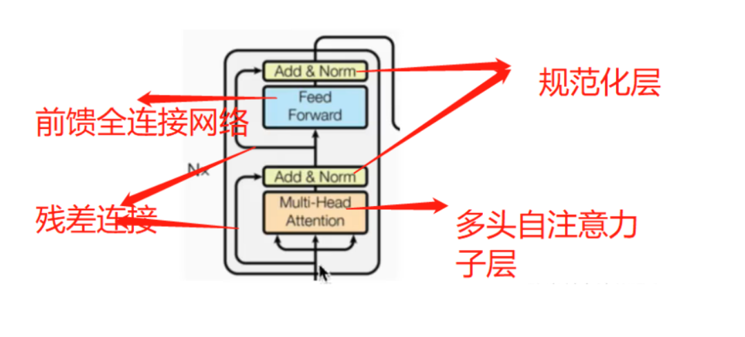 编码器部分: 第一个子层连接结构包括一个多头自注意力子层和规范化层以及一个残差连接 第二个子层连接结构包括一个前馈全连接子层和规范化以及一个残差连接