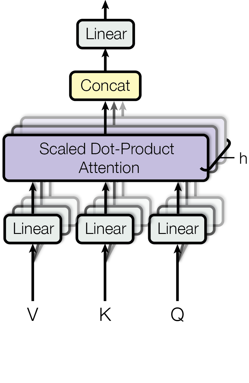 40岁老架构师尼恩提示: 这部分内容如果不懂,可以稍后去学习技术自由圈社群对应的配套视频《从0到1穿透LLM大模型架构》,具体请参见尼恩的公号,技术自由圈 Multi-head Attention(多头注意) multi-head attention由多个 scaled dot-product attention (自注意力模型)基础单元经过堆叠而成, multi-head attention把query和key映射到高维空间的不同子空间中去计算相似度,且多头注意的输入都是query Q、key K 、value V 三个元素,只是 Q、K、V 的取值不同。 为了更好的理解multi-head attention,我们分成两步走: 第一步,回顾一下 scaled dot-product attention(缩放的点乘注意力): 首先,attention也叫self-attention,顾名思义,就是自己和自己做attention操作,即得到所有时刻的数据后,可以用其中每一时刻数据与所有数据中任意一时刻数据进行计算attention(相似程度)。 1)将编码器与文本输入生成输入向量,然后将其生成三个向量,生成方法是将输入向量分别乘以三个权重矩阵,这些矩阵是可以在训练过程学习的,而且所有的输入向量都共享这三个权重矩阵。 2)计算attention,即计算一个分值,将对应的Q、K依次进行点积获得每个位置的分值。 4)对计算出来的分值进行softmax操作,归一化分值使得全为正数且它们的和为1。 5)将softmax分值与V的向量按位相乘,保留关注词的value值,削弱非相关词的value值。 6)将所有加权向量加起来,产生该位置的self-attention的输出结果。 第二步,介绍一下multi-head attention(多头注意)介绍: 如上图所示,这就是scaled dot-product attention的堆叠(stacking), 先把我们上面讲过的Q、K、V进行线性变换变成Q'、K'、V',然后进行attention计算, 重复这样的操作h次,然后将这h次的结果进行concat(合并),最后总的做一次线性变换,输出的就是多头注意这个模块的输出了。 而在主框架中右半部分的多头注意中,与其他两个多头注意有些差异,它是一个cross_attention,它的Q是由目标端序列而来,K、V是由源端序列来的。 40岁老架构师尼恩提示: 这部分内容如果不懂,可以稍后去学习技术自由圈社群对应的配套视频《从0到1穿透LLM大模型架构》,具体请参见尼恩的公号,技术自由圈 ADD&Normalization(残差连接与规范化层) 在 主框架 中每一个模块后面,都有一个残差连接和规范化层, 它是一个通用的技术,它的本质是可以有效的改善深层模型中梯度消失 的问题,且能打破网络对称性,改善网络退化问题,加速收敛,规范化优化空间。 Feed Forward Network(FFN,前馈神经网络) 每一层经过attention之后,还会有一个FFN,这个FFN的作用就是空间变换。 FFN包含了2层linear transformation(线性变换)层,中间的激活函数是ReLu 。 FFN层就是feed forward层。他本质上就是一个MLP(Multilayer Perceptron)多层感知机。 Feed Forward前馈神经网络对应的公式如下(max相当于Relu): 其中两层感知机中,第一层会将输入的向量升维,第二层将向量重新降维。 40岁老架构师尼恩提示:大模型比较难,功力浅的不容易懂。 这部分内容如果不懂,可以稍后去学习技术自由圈社群对应的配套视频《从0到1穿透LLM大模型架构》,具体请参见尼恩的公号,技术自由圈 多头注意力(Multi-Head Attention) 多头注意力(Multi-Head Attention)和自注意力(Self-Attention)是Transformer模型中的两个关键组件,它们在注意力机制的应用上有一些区别: 自注意力机制用于计算输入序列中每个元素与其他元素的相关性。 在自注意力中,输入序列中的每个元素都会与序列中的其他元素进行比较,以便更好地理解元素之间的依赖关系。 自注意力机制被广泛用于处理序列数据,如自然语言处理中的句子表示和机器翻译等任务。 多头注意力(Multi-Head Attention) :多头注意力是通过将多个自注意力子层的输出进行拼接来增强模型的表达能力。 在多头注意力中,输入序列会经过多个并行的自注意力子层,每个子层都会学习不同的注意力表示。 最终,多个注意力头的输出会被拼接起来,以丰富模型对输入序列的理解。 因此,可以说自注意力是多头注意力的基本构建单元之一。自注意力关注于序列内部的依赖关系,而多头注意力则通过整合多个自注意力头的输出来增强模型的表达能力。 **Self-Attention(自注意力机制):**使输入序列中的每个元素能够关注并加权整个序列中的其他元素,生成新的输出表示,不依赖外部信息或历史状态。 Self-Attention允许输入序列中的每个元素都与序列中的其他所有元素进行交互。 它通过计算每个元素对其他所有元素的注意力权值,然后将这些权值应用于对应元素的本身,从而得到一个加权和的输出表示。 Self-Attention不依赖于外部信息或先前的隐藏状态,完全基于输入序列本身。