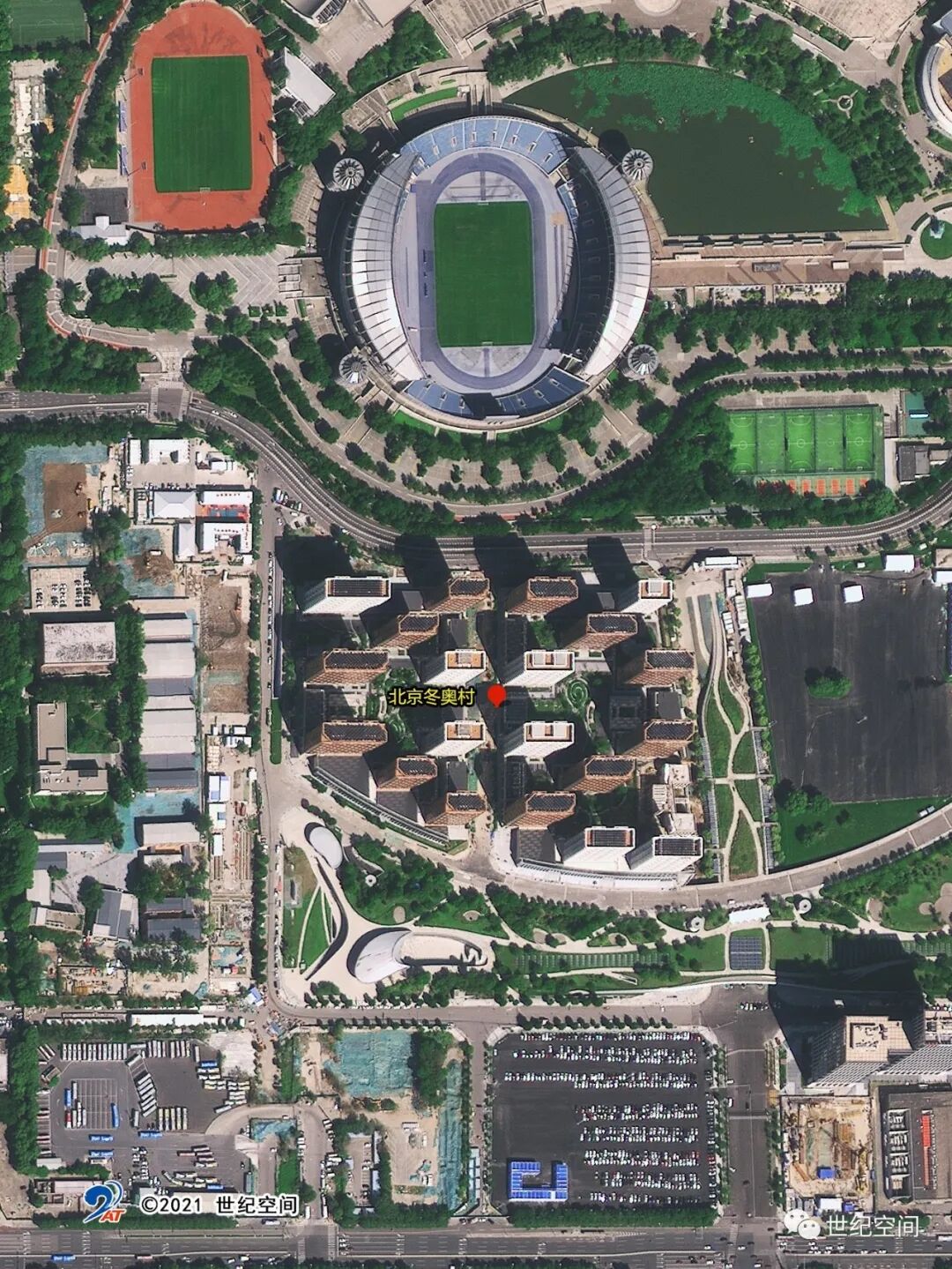 北京冬奥村位于奥体中心以南、中轴线以东,秉承“绿色办奥”理念,采用国际领先的“健康建筑”金级标准设计建造。2021年6月26日,作为北京赛区运动员及随行官员居住生活的北京冬奥村居住区全面完工,并已交付北京冬奥组委使用。赛后,北京冬奥村将作为人才公租房持续运营。该影像为北京三号卫星A星于2021年9月22日拍摄。