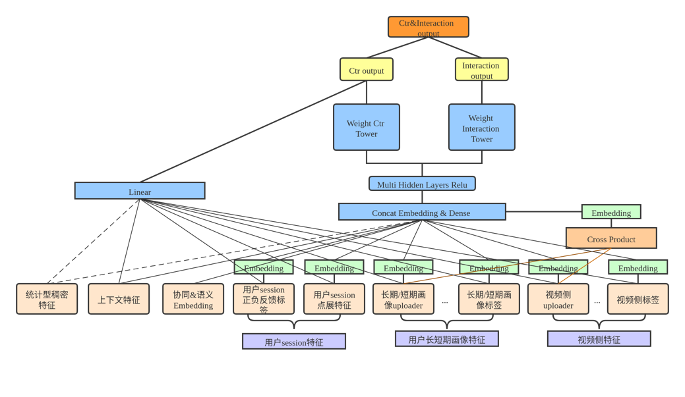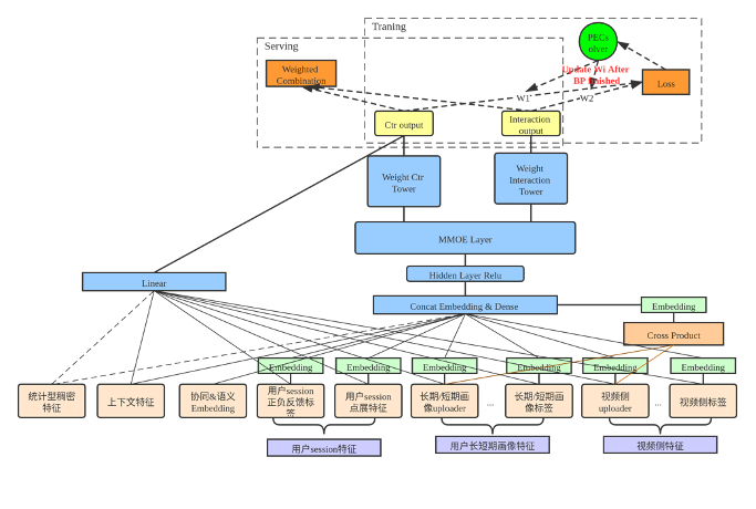 小结:点击和互动没有绝对的联系,点击&时长&互动,不适合ESMM应用场景;互动行为非常稀疏,训练效果较差;多个目标的loss直接相加,难以平衡对每个目标任务的影响,对模型训练造成扰动;不同目标可能差异较大,难以共享底层表示。