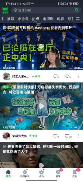 (2) 爱奇艺随刻APP 首页短视频流推荐页面