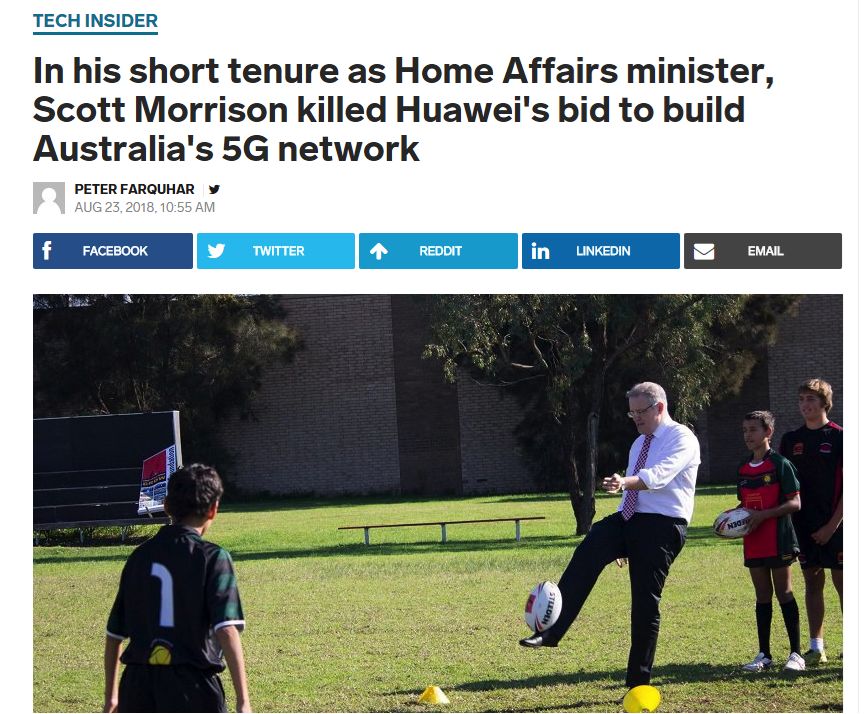不过,接替他的这个莫里森却也不是什么省油的灯。因为,昨天他才刚刚给了中国“当头一棒”:禁止已经在澳大利亚发展15年的中国企业华为,参与该国5G网络的建设。