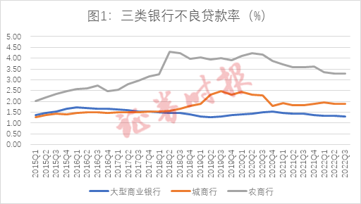 2018年农商行不良贷款率攀升至4.29%,风险骤增,直到2020年四季度才又回落至4%以下,但相对于大型商业银行和城商行,农商行当前的不良贷款率仍在高位运行(图1)。2022年三季末,农商行资本充足率为12.03%,相比于大型商业银行的17.61%,差距进一步拉大。
