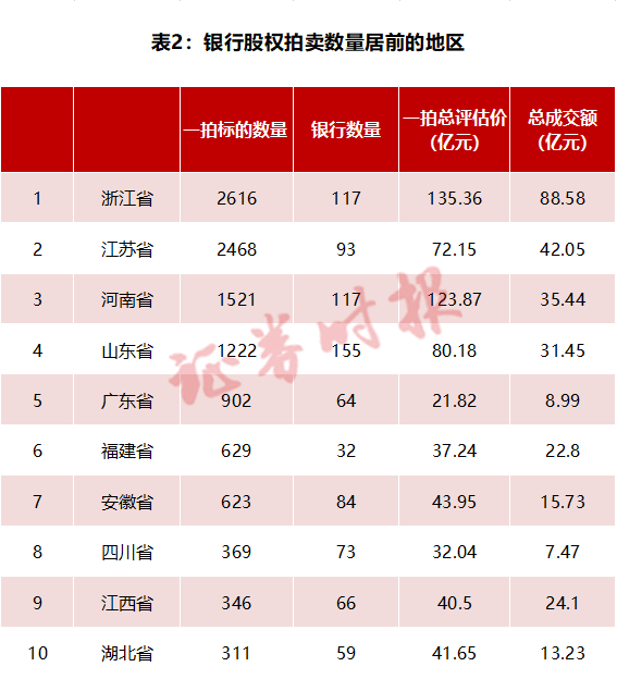 股权拍卖画像:总数逾2万笔,涉及1325家银行,农商行占比超八成