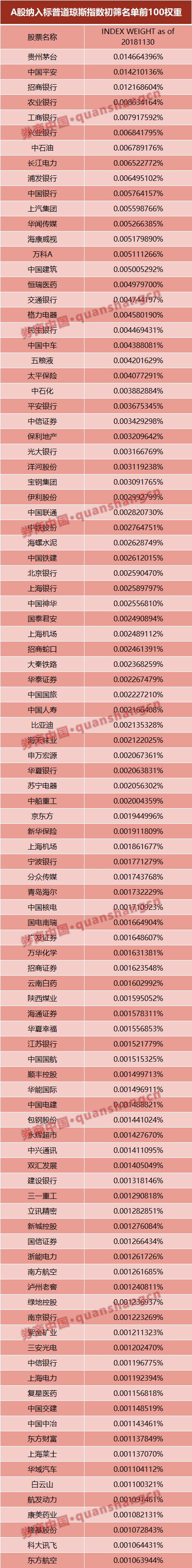本次进入标普道琼斯指数初筛名单的权重最高的50只股票分别是贵州茅台、中国平安、招商银行等,其中有19只为金融股。