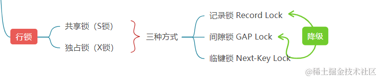 InnoDB 行级锁按照使用方式分为:共享锁(S锁)、排它锁(X锁)